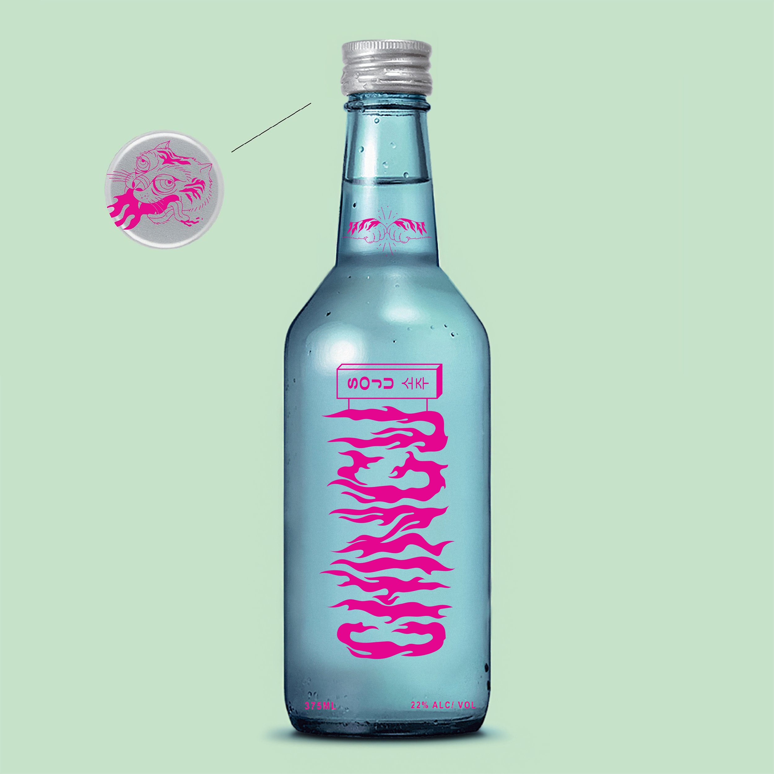 Our logo design was inspired by Soju’s nickname: Korean Fire Water. We also leaned into design elements found on various Korean street signs.