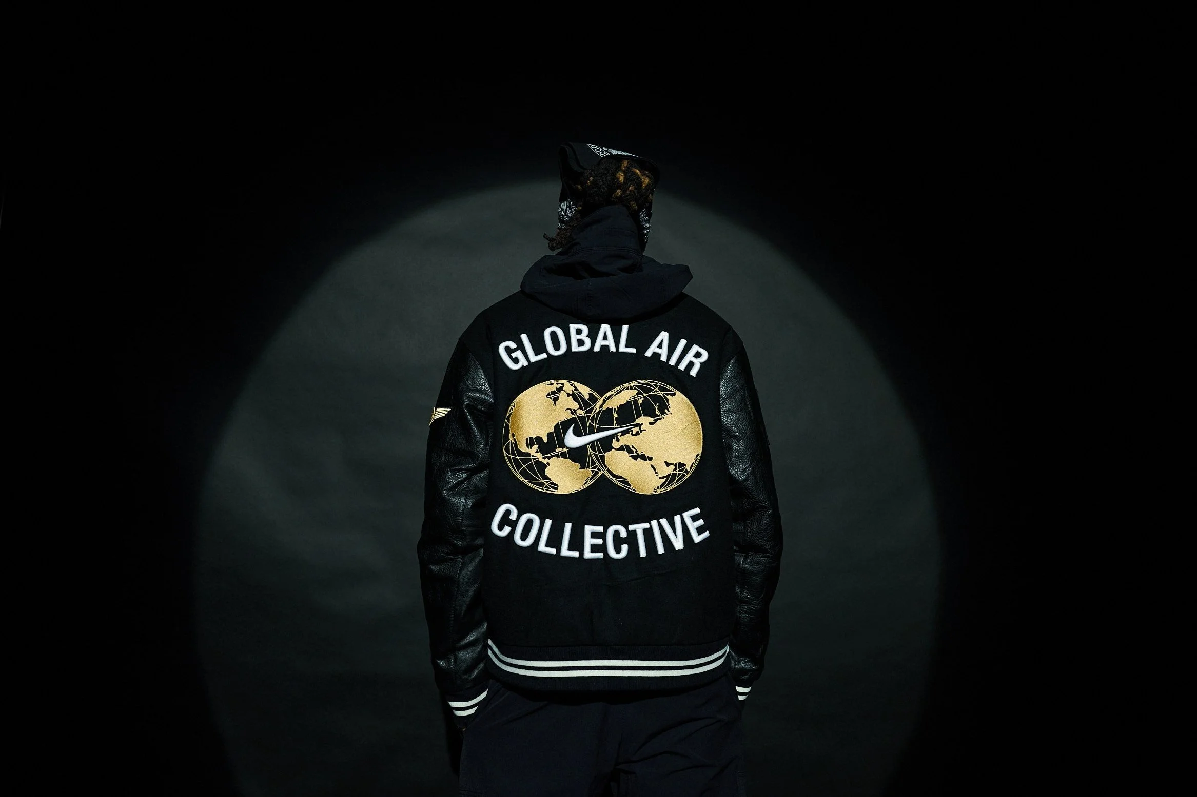 Nothing says exclusive club like a members’ jacket. This MAXXED OUT Nike varsity jacket was customized with embroidered stage names, a JD Global Air Collective crest, and Nike + JD branded iconography patches to create the most enviable co-branded piece.