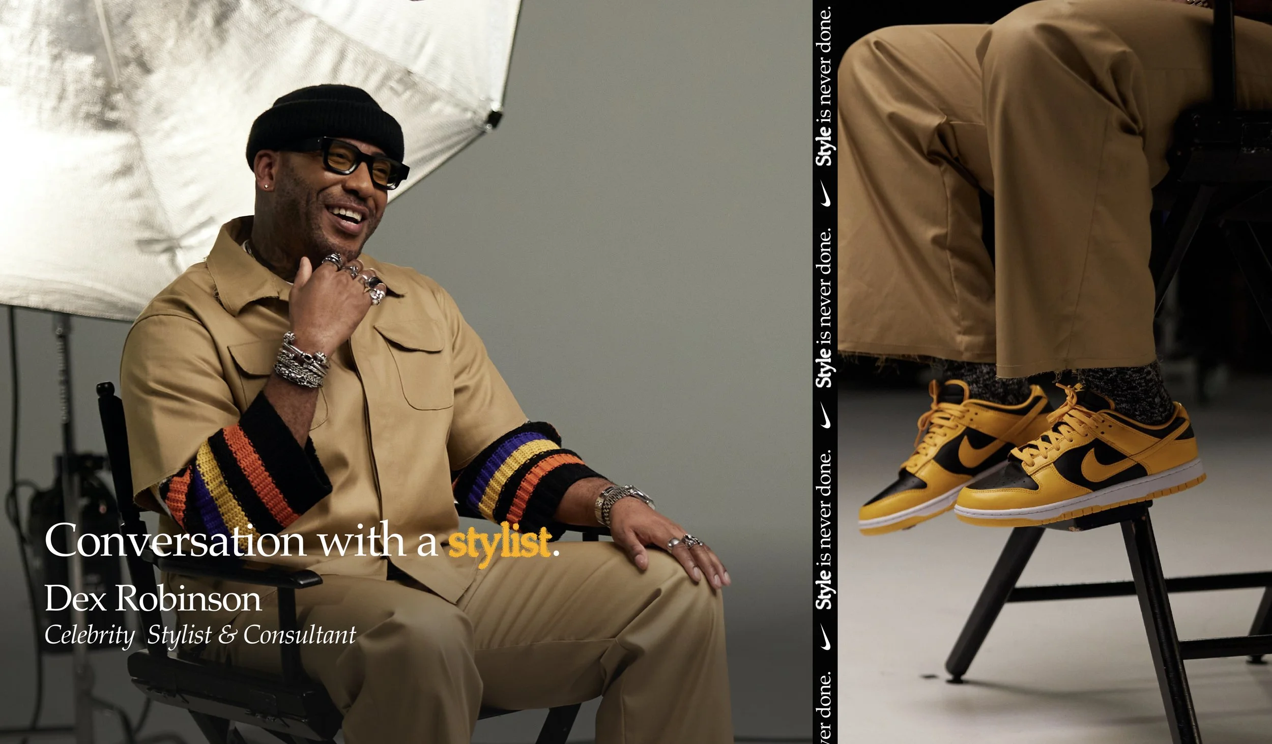 Throughout our premium photo and video shoot, we followed Dex and Kahlana as they worked their magic behind the scenes—styling each Nike shoe in two different ways. We leaned into the greater Nike “Never Done” messaging and campaign creative for 2022 through curated photos of styled models, BTS, interviews, and sneak peeks into the stylists’ shoe collections (For SNKRS Fitted and Paid Media). Every piece of the production was crucial to telling their stories and giving consumers the best tips on how to instantly elevate their fashion game.