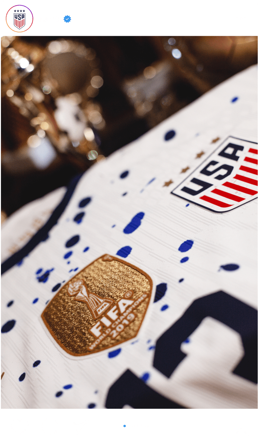 Social media content was all about building the hype around the team’s journey to the World Cup in addition to the jersey reveal. Along with the two videos, static carousel posts were shared describing some of the jersey’s nods to moments in USWNT history.